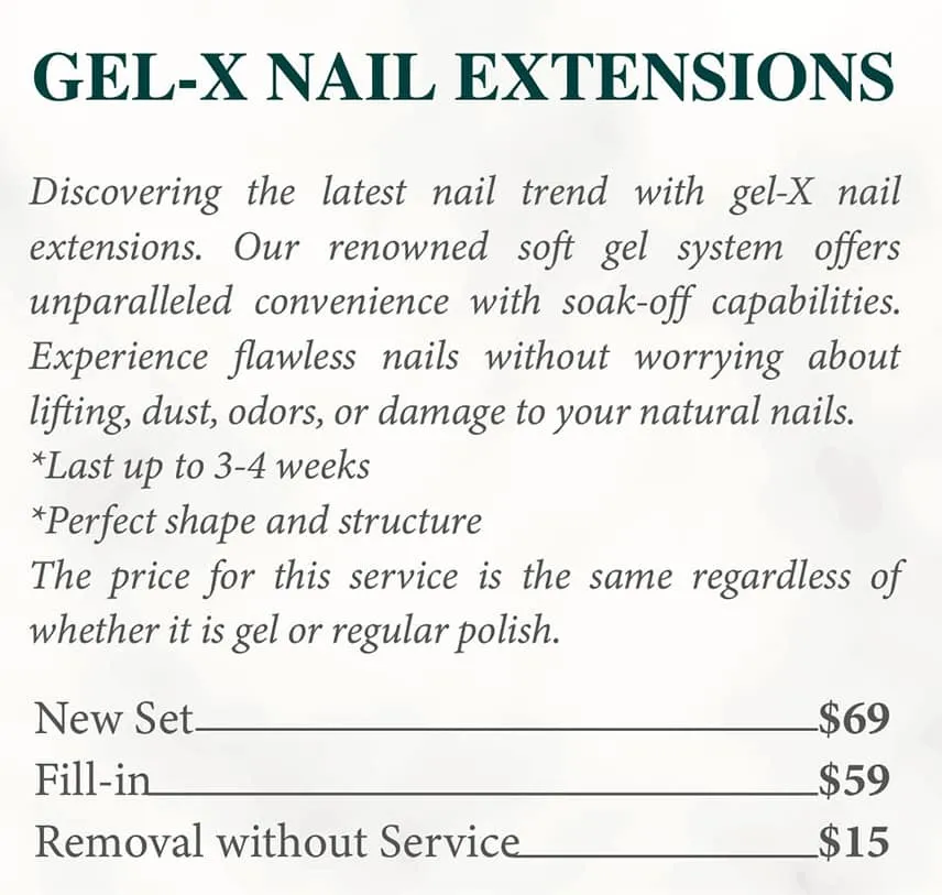 Achieve stunning nails with our Gel-X nail extensions. Enjoy long-lasting and beautiful results with minimal maintenance.